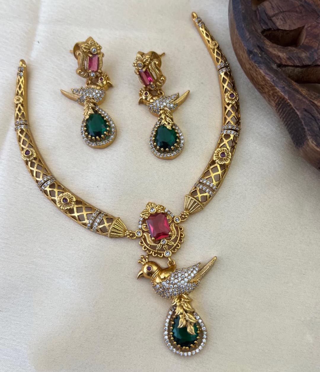 Traditional temple-inspired bridal jewelry sets adorned with divine motifs, crafted to enhance...